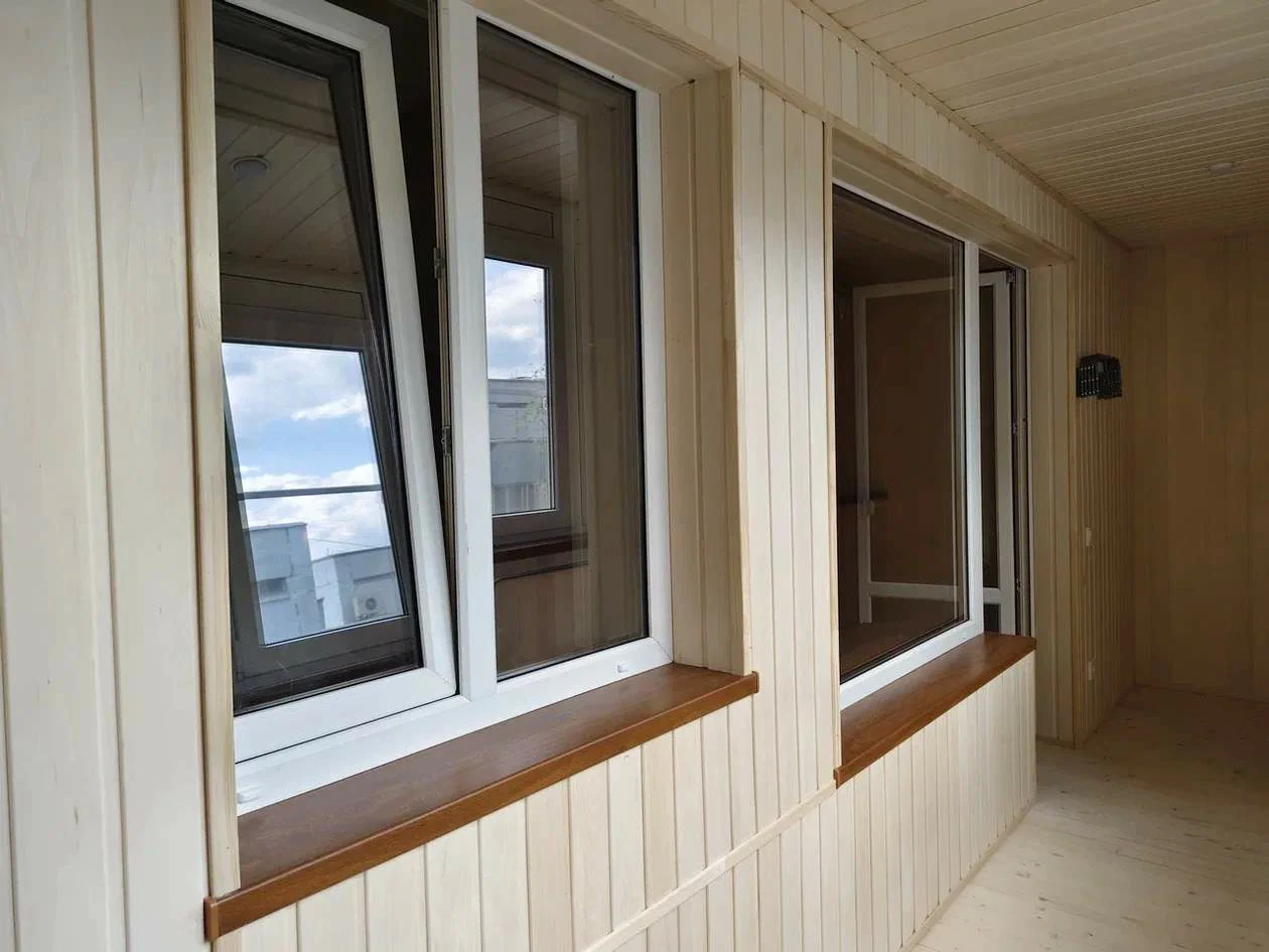 Холодное остекление балкона и отделка деревянной вагонкой