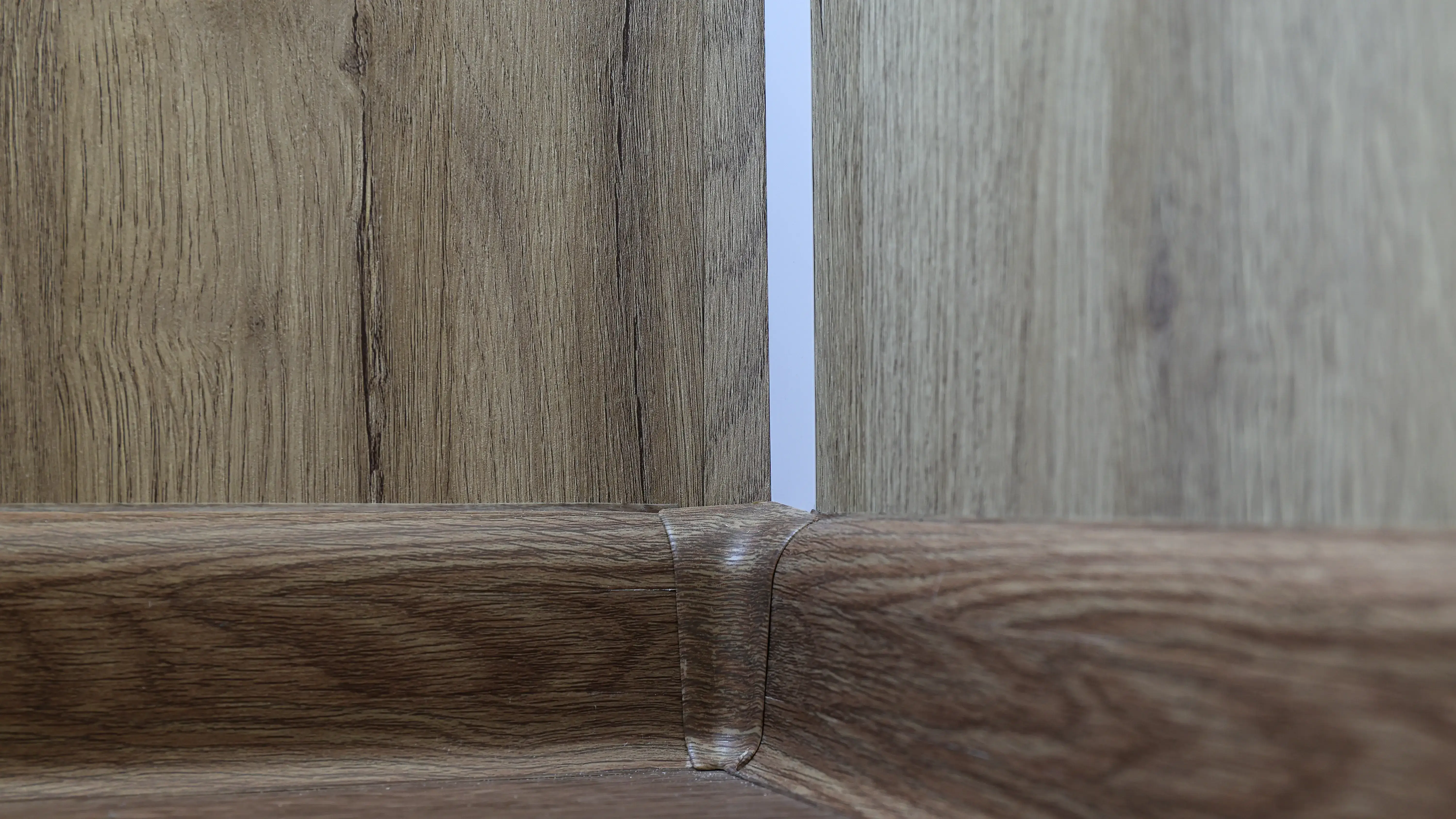 Обшивка стен: смонтированы ПВХ-панели в оттенке «дуб благородный», устойчивые к влаге и простые в уходе.