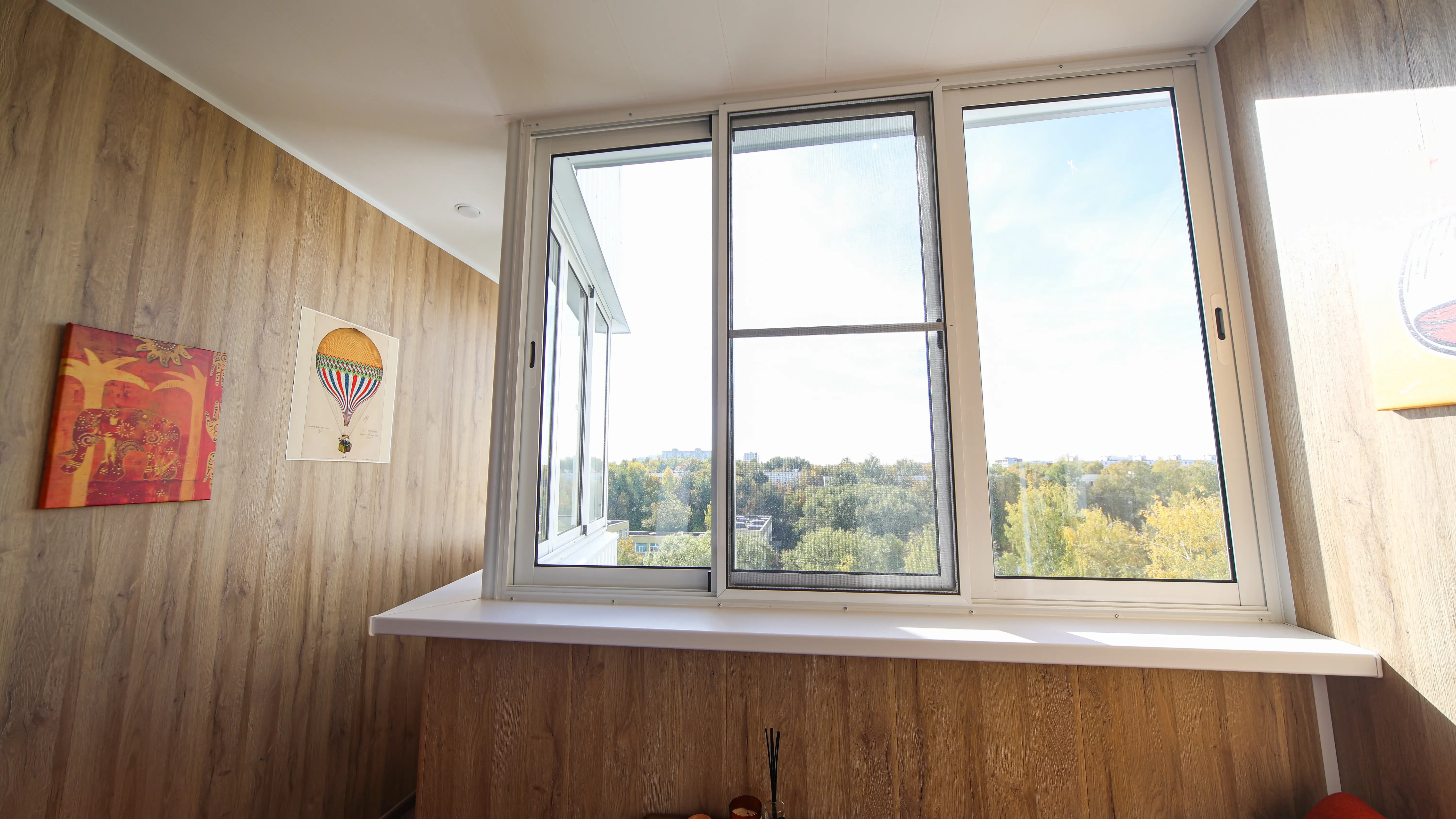 Основные этапы работ: выполнено холодное остекление Provedal — по три створки на каждый пролёт. В местах, где раздвижные системы были невозможны, установлены классические открывающиеся створки. Парапет утеплён пеноплексом для снижения шума и повышения комфорта. Устранена щель около 10 см между плитой и парапетом. Внешний блок кондиционера до начала работ вынесен наружу.